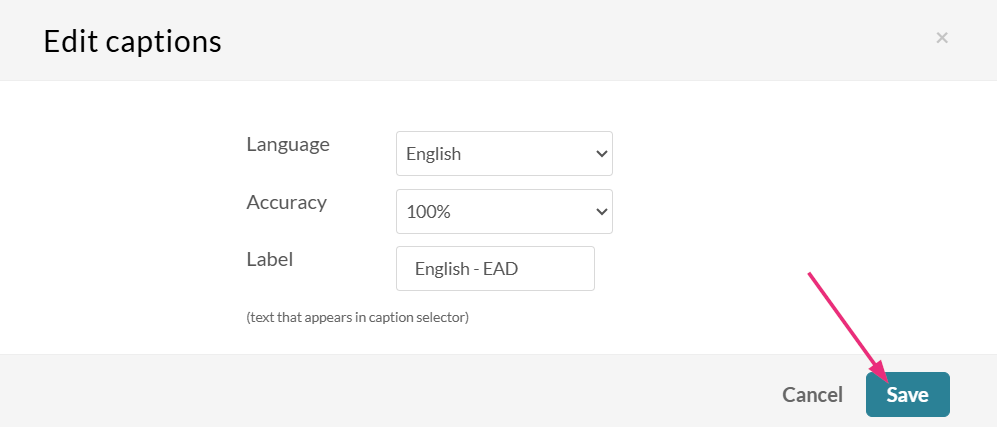 - Type in a label (it's advisable to add an “EAD” suffix to clearly identify the file as extended audio description).
