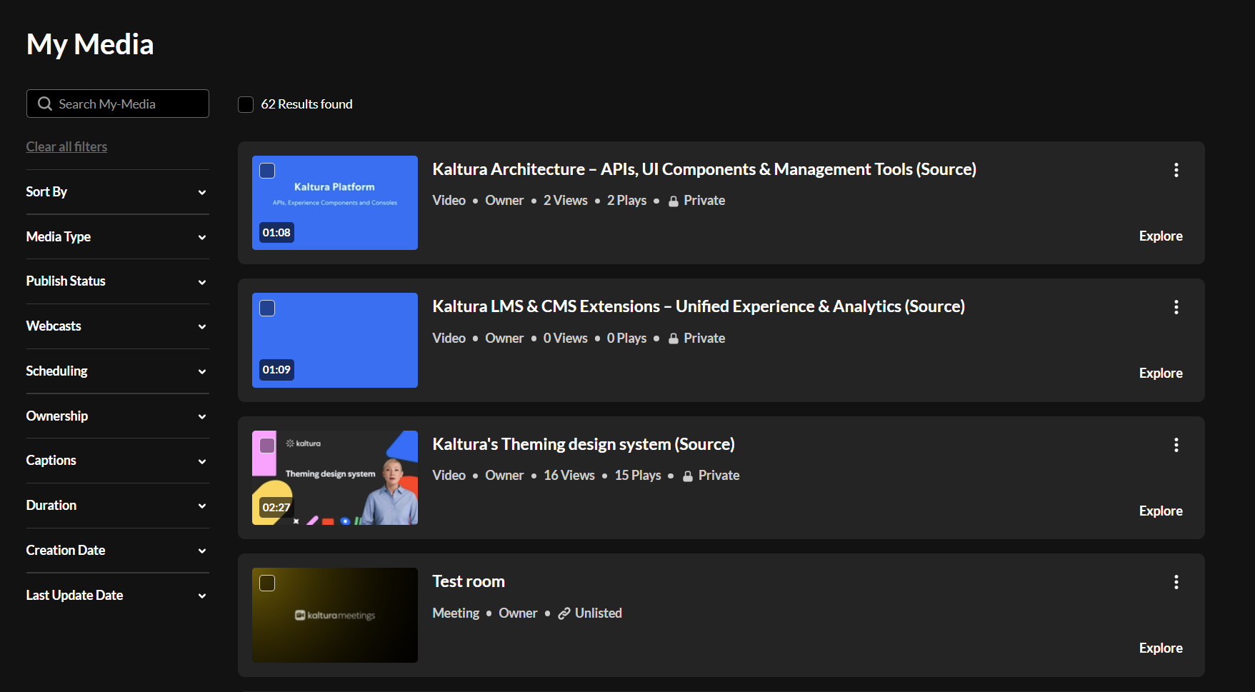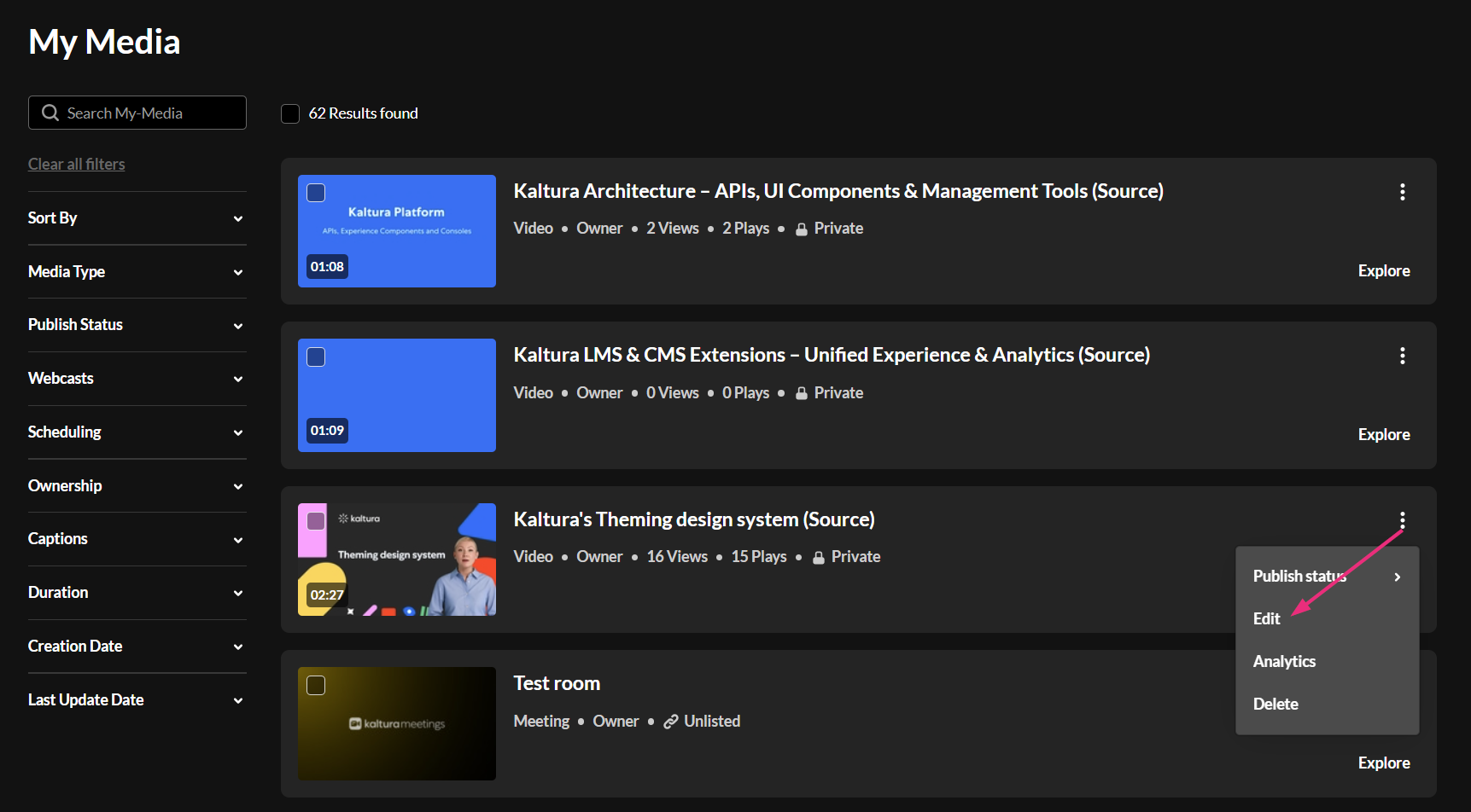 - Locate the desired media and click the three dots at the far right and select Edit.