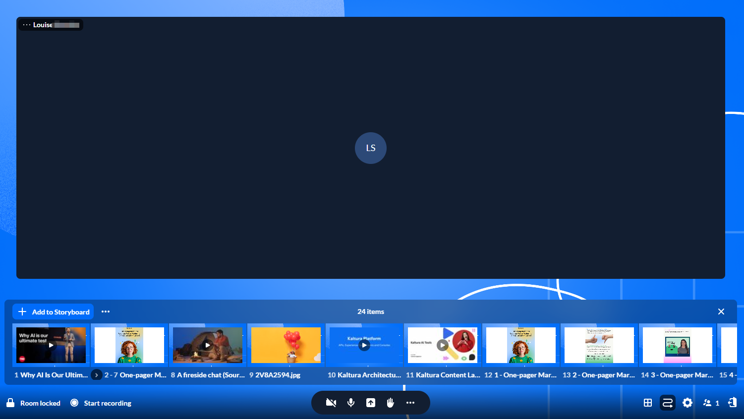 - For instructions on preparing content in advance, see Prepare your storyboard before a session in the Kaltura Room.