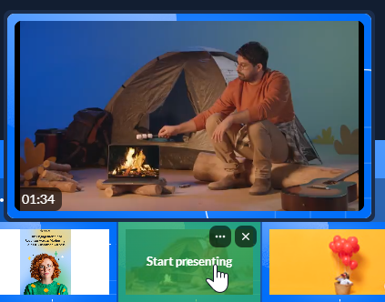 - When you hover over an item, the thumbnail turns green and displays “Start presenting.” A preview popup of the media also appears so you can quickly review the content before presenting it.