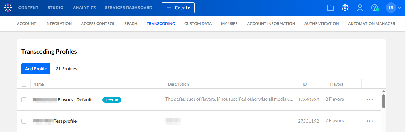- In the Transcoding Profiles page, select or create a live transcoding profile (see our article How to Set Transcoding Profiles for Live Streaming for additional information).
