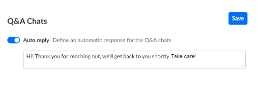 Enable auto reply and define an automatic response for Q&A chats